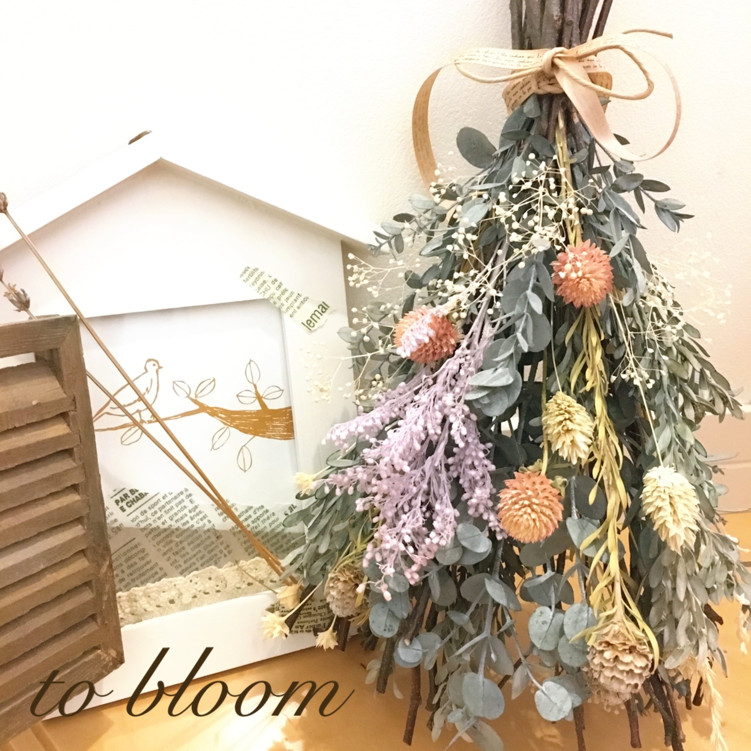 ※ドライフラワーとプリザーブドフラワーを使用していますので、直射日光の当たるところや屋外に飾ることはお控えください。風通しのよい室内に飾って頂くと、綺麗な状態でより長く楽しんで頂けます。